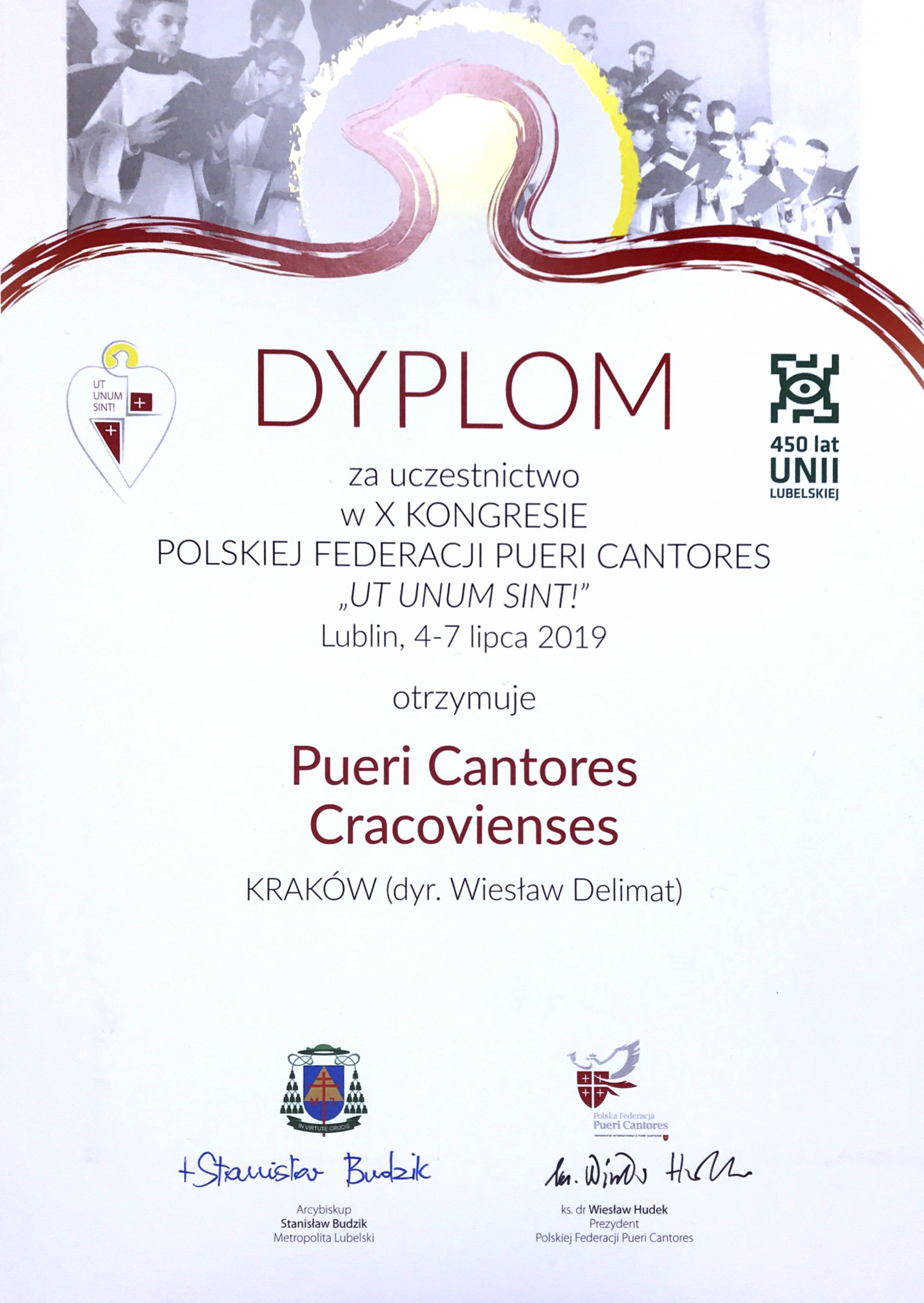 Złożony z uczniów ASM chór Pueri Cantores Cracovienses wziął udział w X Krajowym Kongresie Polskiej Federacji Pueri Cantores w Lublinie (4-7 lipca 2019). Tym samym nasi uczniowie stali się częścią ponad 800-osobowej wspólnoty, reprezentującej aż 23 chóry z Polski, Węgier i Łotwy. Wśród wydarzeń, które uświetnili, znalazły się m.in.: msza św. pod przewodnictwem abp. Stanisława Budzika, modlitwa o pokój w lubelskiej archikatedrze, koncert galowy (podczas którego pod kierunkiem Wiesława Delimata wykonano m.in. „IV Litanię ostrobramską” Stanisława Moniuszki), koncert w bazylice oo. dominikanów (podczas którego zabrzmiały kompozycje m.in. Lecha Skoczylasa) czy uroczysty przemarsz ulicami miasta. Hasłem tegorocznego kongresu był fragment z Ewangelii wg św. Jana: „Ut omnes unum sint” („Aby wszyscy byli jedno”). W tak licznym gronie serc wypełnionych muzyką zabrzmiało ono nadzwyczaj wymownie!