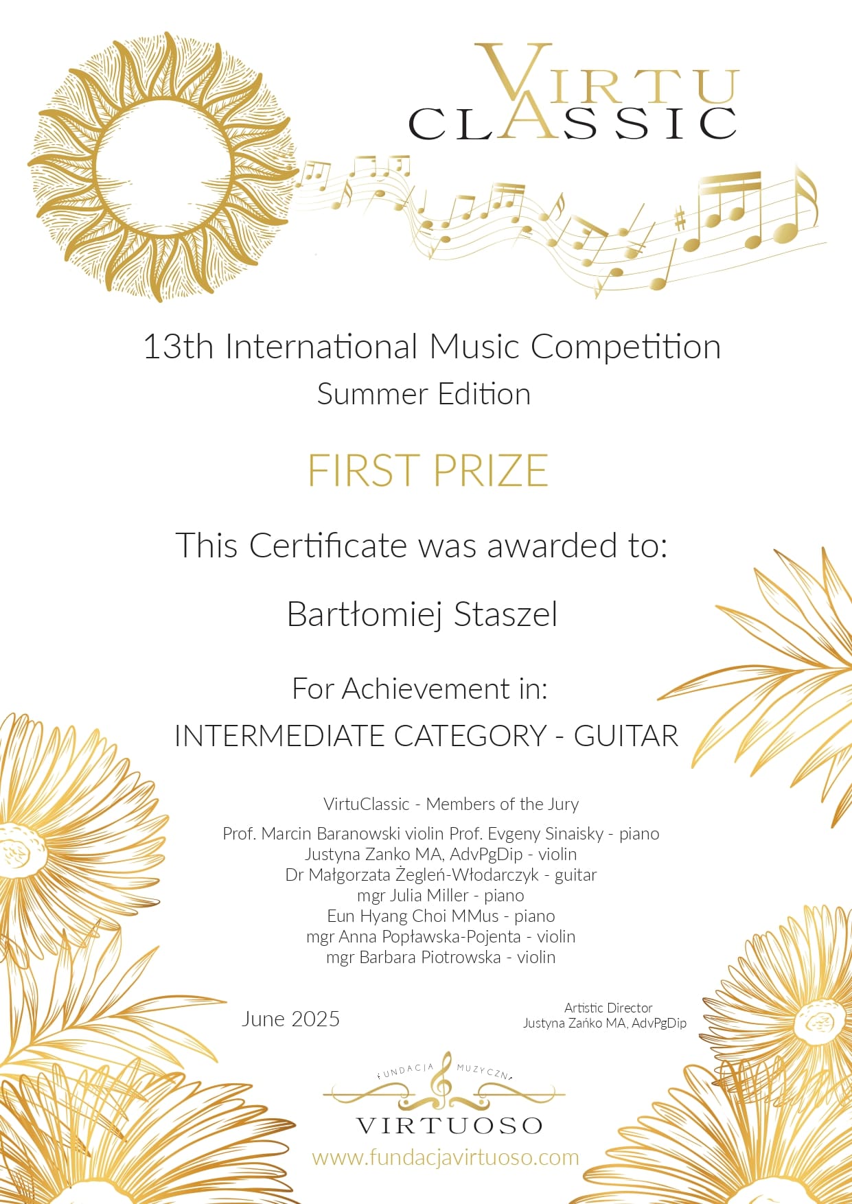 - III miejsce w VI Ogólnopolskim Konkursie Pianistycznym im. Iwony Kuźmy „Pianogranie” (Kraków 2024)